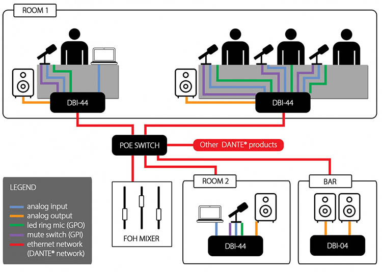 - 4×4 Dante®/AES67 ? balanced analog bridge