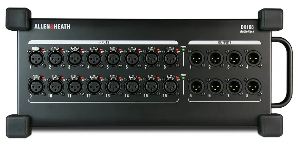 The Allen & Heath DX168 is a portable 16-input, 8-output digital stagebox designed for dLive S Class, C Class, SQ, and Avantis systems. Offering 16 high-quality mic/line XLR inputs and 8 XLR line outputs, this rugged expander connects over Cat5e using DX protocol for low-latency, high-fidelity audio transmission. With a compact, stage-ready chassis and robust EtherCon connectors, the DX168 is perfect for touring, rental, and installation environments needing flexible, high-performance I/O expansion.(Suitable for QU 96Khz models only)