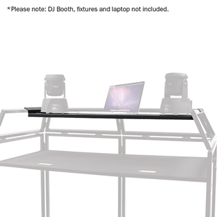 DJ Booths with white Lycra can be enhanced by using a lighting effect behind the cloth whilst overhead brackets and additional options can create more working space for the user.