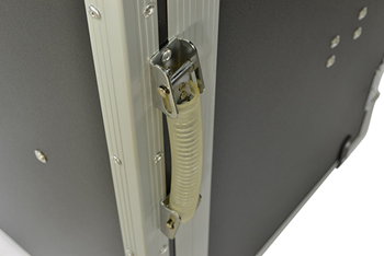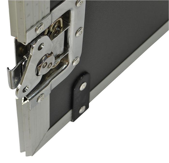 A fold flat flight style table and storage work place. Takes only minutes to assemble. This is a rugged piece of kit suitable for DJ's, presenters, bands, magicians and entertainers. Also works well on exhibition stands. Fitted with casters and high quality hardware.