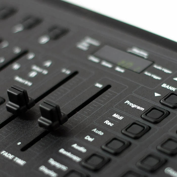 A top DMX controller, ADJ's DMX Operator controls up to 192 DMX channels. With it, you can record up to 6 chases which you can then playback with separate fade and step speeds. The 8 individual faders provide easy controllability for any DMX 512 intelligent fixture.
