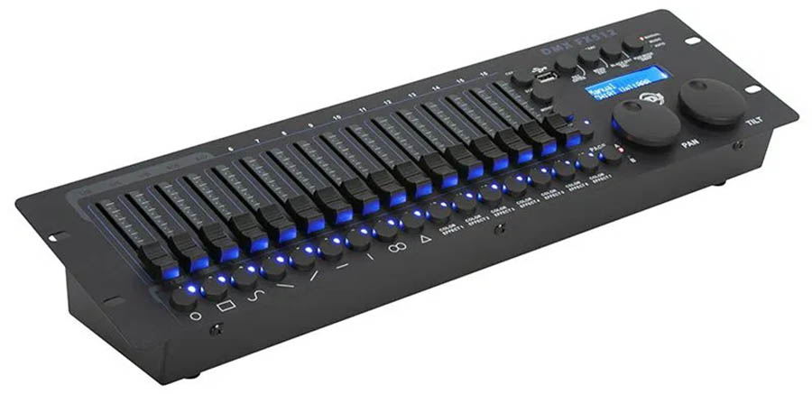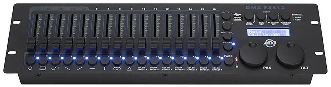 The ADJ Lighting FX512 is a cutting-edge 19-inch rack-mount DMX controller designed for professional lighting applications such as churches, nightclubs, stages, or for event production. With a compact 3-rack space design, this tactile, hands-on controller boasts powerful features, for both moving heads and RGB LED fixtures, that elevate the lighting experience for lighting designers and operators on the go or in a fixed installation.
