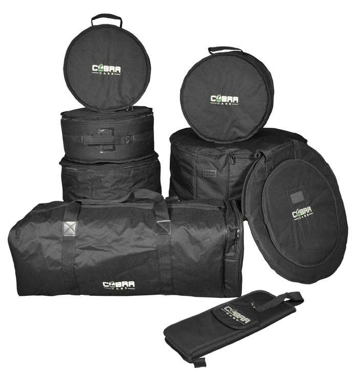 An 8 piece drum set bag kit to accommodate the most popular size of drums. This set includes kick drum, high tom, middle tom, floor tom, snare drum, sticks, cymbals and hardware bags. Each bag is made from heavy duty material with 10mm padding, double zip, a strong carry handle and rubber feet. A good alternative to hard cases without the added weight or cost. An affordable low cost set for all drummers that want to store and transport there kit.