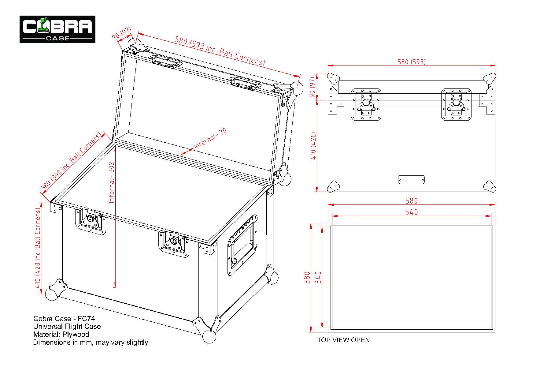 A useful flight case with strong plywood construction, laminated finish and carpet lining. The box has all kinds of applications, including storing and transporting lighting effects. The FC74,FC75, FC82 and FC83 form part of a standard series of cases that will stack together and fit a standard Euro pallet for convenient shipping or van transport.