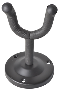 This guitar hanger is the perfect way to display your guitar on the wall while keeping it within easy reach. It can be mounted on any wall and features a padded yoke that protects your guitar's finish. The arm of the hanger is suitable for most types of electric or acoustic guitar, but not classic or Spanish types. The base is easy to fit to the wall with screws and the arm screws can be “locked off” with the supplied locking nut. This stops it rotating after fitting. This is a great way to show off your guitar collection or to keep your main guitar within easy reach.