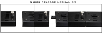 The compact and lightweight design of the BTX-LIGHTSTRIKE makes it easy to incorporate into various scenery setups. It comes with two mounting options: tilt mounting brackets, to which standard clamps can be added, and Omega bracket bases, compatible with optional omega brackets and standard clamps. The projector also features a quick-release mechanism that allows for fast connection and alignment of multiple units.