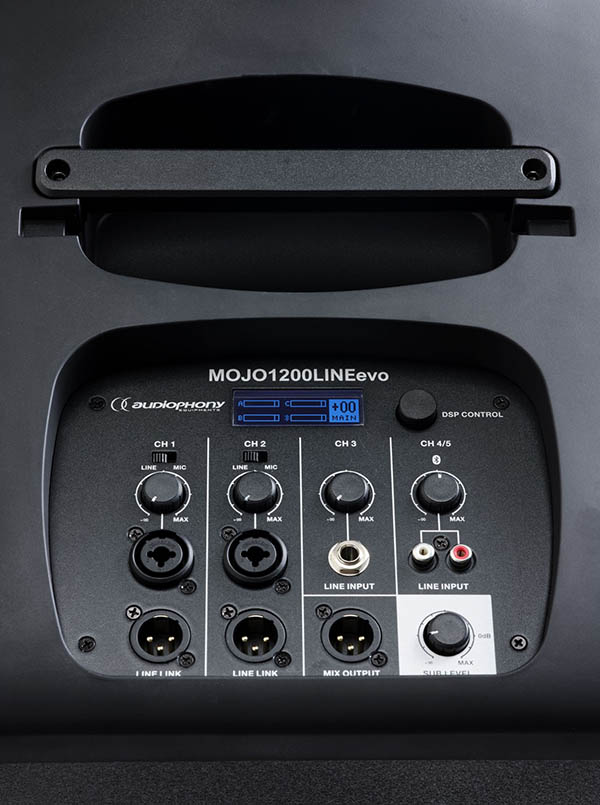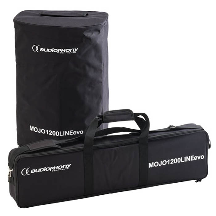 The Audiophony Mojo 1200 Line Evo is a 1200-watt amplifier system featuring a 10-inch subwoofer and advanced DSP control. It offers comprehensive tone control and comes with presets tailored for music, DJ sets, and voice applications. Additional functions include delay, low-cut, and Bluetooth settings, with Bluetooth TWS connectivity for seamless wireless pairing. The system is supplied with padded bags for easy transport and protection. Connection options include two mic/line inputs, one mono line input, and a phone/RCA input, making it highly versatile. This setup is particularly well-suited for DJs, singers, and corporate events.