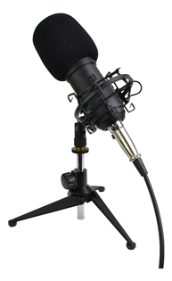 A studio microphone suitable for vocal or music recording and particularly suited to mini studios. The microphone has a metal framed anti shock suspension, that will keep unwanted background disturbances low, while allowing good positioning of the microphone. There is a small desk stand included with the package, ideal if the microphone is used for blogging or the shock mount can be detached and secured to a larger floor stand. Connection is via a XLR lead for connection to a suitable mixer with phantom power.