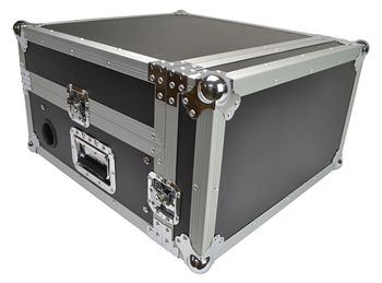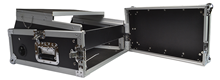 A flight case for mixer and CD player combinations. The bottom section will take 2U of equipment with a maximum depth of 470mm. The laptop shelf can be slid into position, there is a door at the rear and holes on each side for cabling.