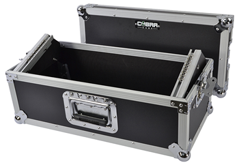 A small 19" case for lighting or audio controllers with up to 4U (352mm) of panel height. Made from laminated plywood with full aluminium trim, with butterfly catches, rubber feet and strong handle. Supplied with rack screws.