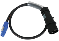 16A 240V single phase cables manufactured with H07RNF cable and fitted with a 16A 3-Pin Mennekes plug and/or socket in a range of lengths. The cables are finished with a short length of clear heatshrink ready for identification to be added.