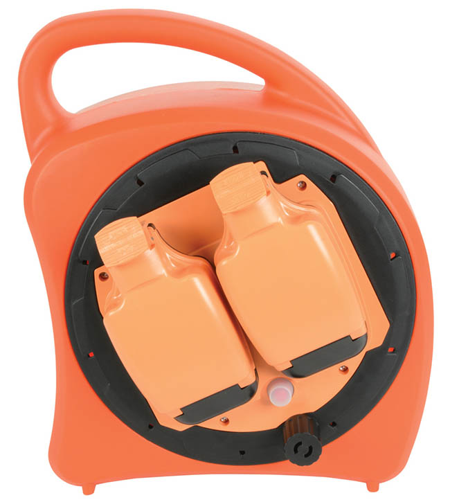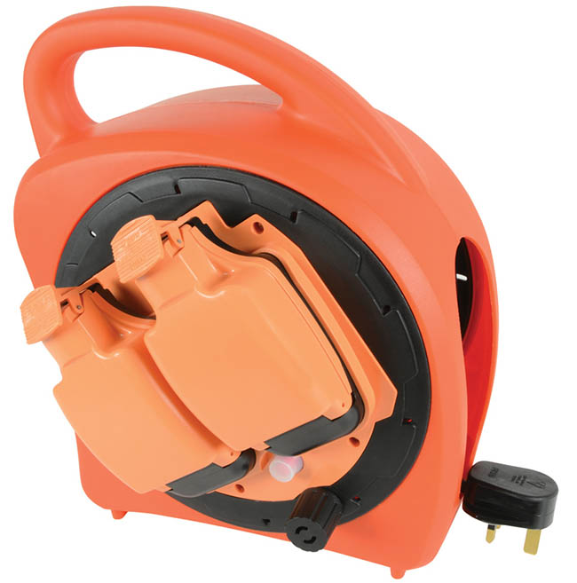 A tough and durable, weatherproof mains extension reel with 2 enclosed mains sockets, thermal cut out and high visibility cable. The 2 splashproof sockets are IP54 rated and provide a safe and convenient temporary outdoor power solution.