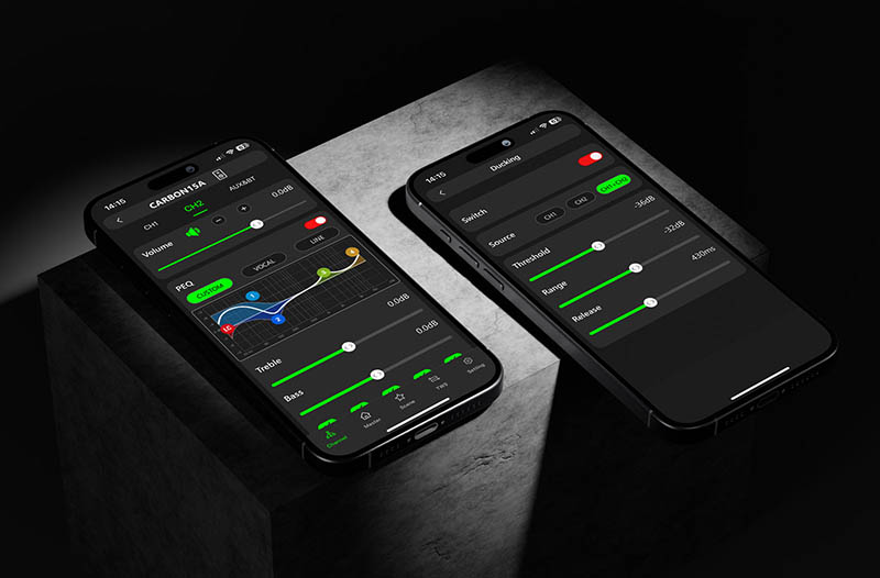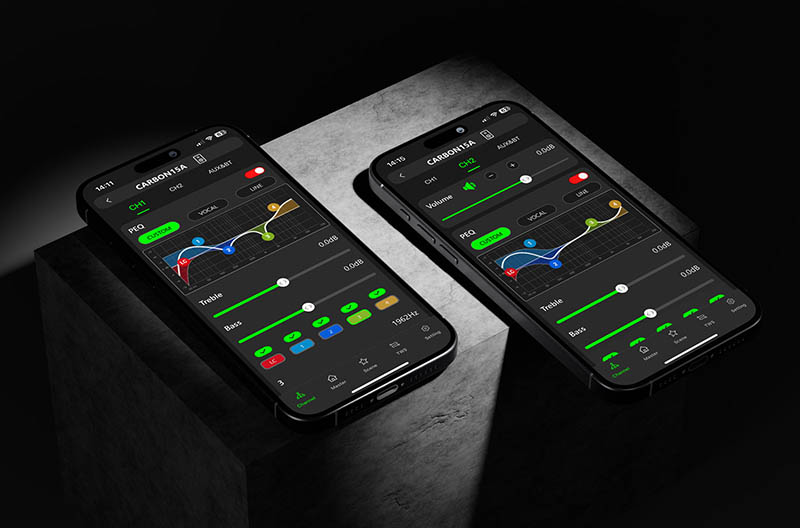 With its combination of durable construction, high-performance audio, and advanced digital control, the Audiophony Carbon 15A is designed to meet the demands of professional audio applications and live events.