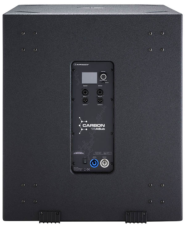 The Audiophony CARBON 18Asub is an active subwoofer featuring a Class D amplifier with a total power output of 1000 W RMS and 2000 W maximum. It is powered via a 220-240V AC 50 Hz switching SMPS. The subwoofer is equipped with an 18-inch woofer with a 4-inch voice coil and a 95.6 Oz magnet, rated at 8 Ohms with 800 W AES and 1600 W program power.