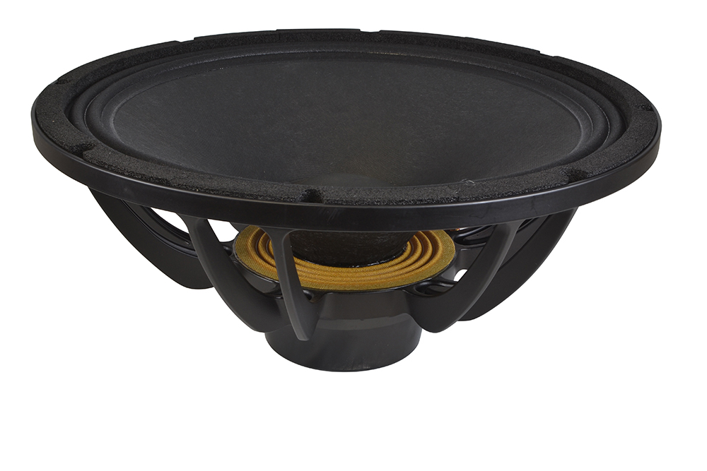 Nominal Diameter: 395mm/ 15 inch Frame: Aluminium Magnet: NdFeB Ring Magnet Diameter: 74mm Nominal Impedance: 8 Ohm Magnetic Gap Depth: 12mm AES Power Handling: 500W Continuous Program Power: 1000W Sensitivity 1W/1M: 95.9dB Frequency Range: 50-5kHz Voice Coil Diameter: 75.5mm/ 3 inch Winding Material: CCAR Former Material: TIL Winding Depth: 17mm Surround (Damper): C Cone and Dust Cap: Paper Surround Material: Polycotton Surround Design: Double-roll Rosonanco Frequency: Fs, 50Hz DC Resistance: Re, 7.2 Ohms Mechanical Factor: Qms, 5.841 Electrical Factor: Qes, 0.476 Total Factor: Qts, 0.44 BL Factor: BL, 22.496T.m Effective Moving Mass: Mms, 106.107gr Compliance: Cms, 94.943 µ M/N Equivalent Cas Air Load: Vas 96.255L Effective Piston Area: Sd, 0.084m² ? (Eta Zero): ?0, 2.467% Overall Diameter: 395mm Bolt Circle Diameter: 375mm Baffle Cutout Diameter: 255mm Depth: 176mm Neight Weight: 4.6kg Shipping Weight: 5.5kg