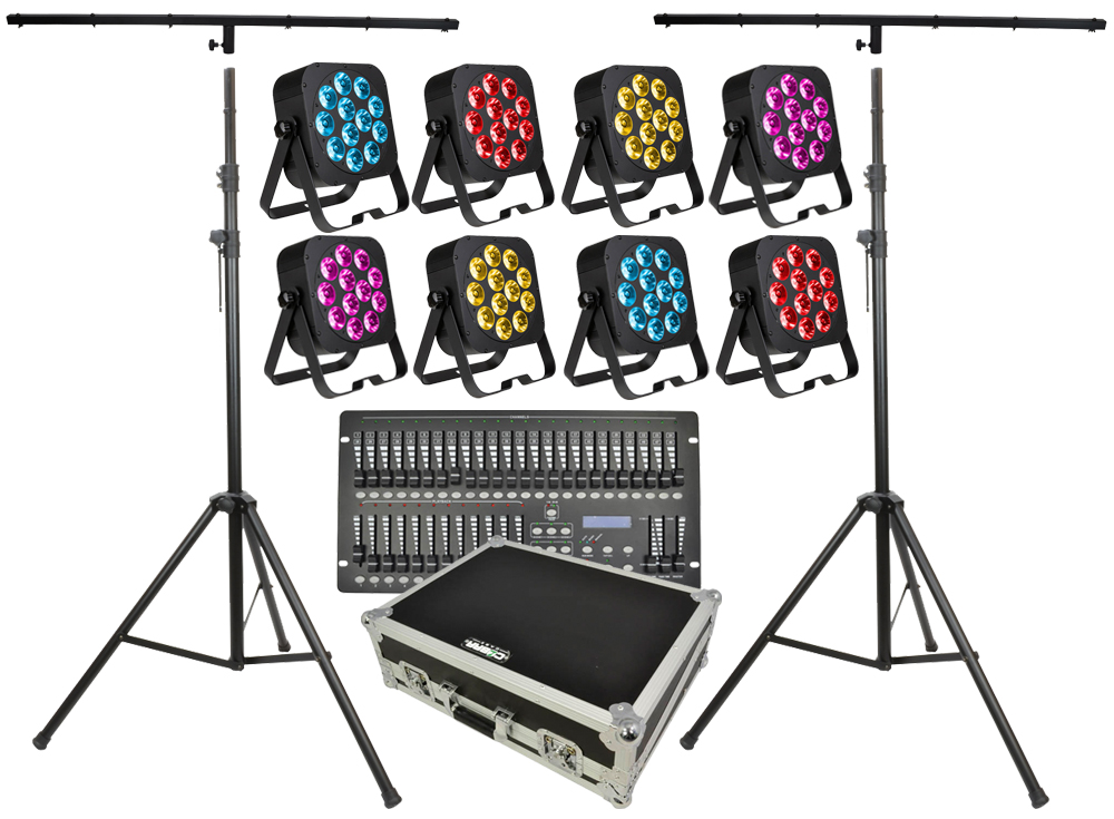 Take your stage lighting to the next level with this high-performance lighting system. Supplied with two durable stands, each supports four advanced LED par cans—each fixture equipped with twelve 20W RGBLA+UV LEDs for outstanding brightness and rich colour output. Designed for small to mid-sized stages, this setup delivers professional-grade results in a compact and portable form.With Red, Green, Blue, Amber, Lime, and UV LEDs, these lights offer exceptional colour mixing capabilities—producing a stunning spectrum of hues including vivid primaries, subtle pastels, and crisp whites. The inclusion of Lime LEDs enhances white balance and colour temperature accuracy, making your stage look more natural under light.Set up one stand on either side of the stage to achieve a broad, immersive colour wash. The included DMX controller is intuitive, with options for manual operation or storing custom scenes and chases. Setup is fast—each fixture simply requires power and a DMX link, with all necessary cables included.Each light also comes with built-in floor brackets, allowing them to be used independently of the stands for greater flexibility in placement.Ideal for schools, community venues, and mobile performers, this system combines power, simplicity, and portability.Optional Pre-Programming AvailableCall and quote PROGRAML for custom scene setup.