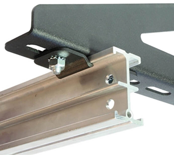 A pair of steel rail clamps designed to work with our range of slotted wall brackets (T84105, T84106 and T84107). These can also be used as a direct fix to a solid substrate.Supplied with fasteners.