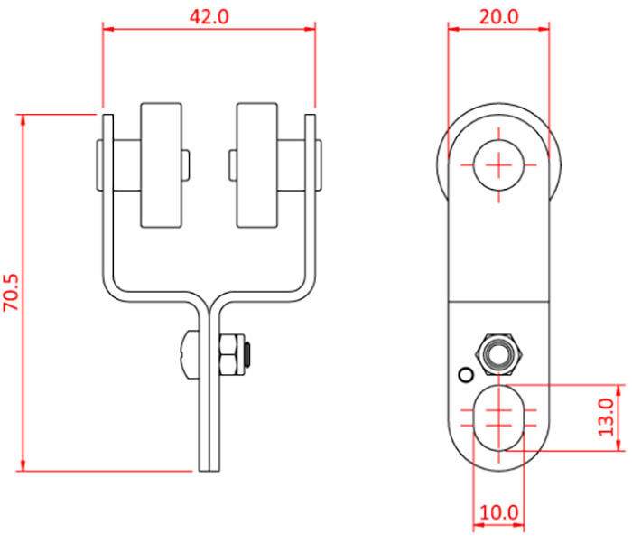 Safe Working Load: 10KgDimensions: 70.5 x 42 x 20mmWeight: 100g (Per Carriage)